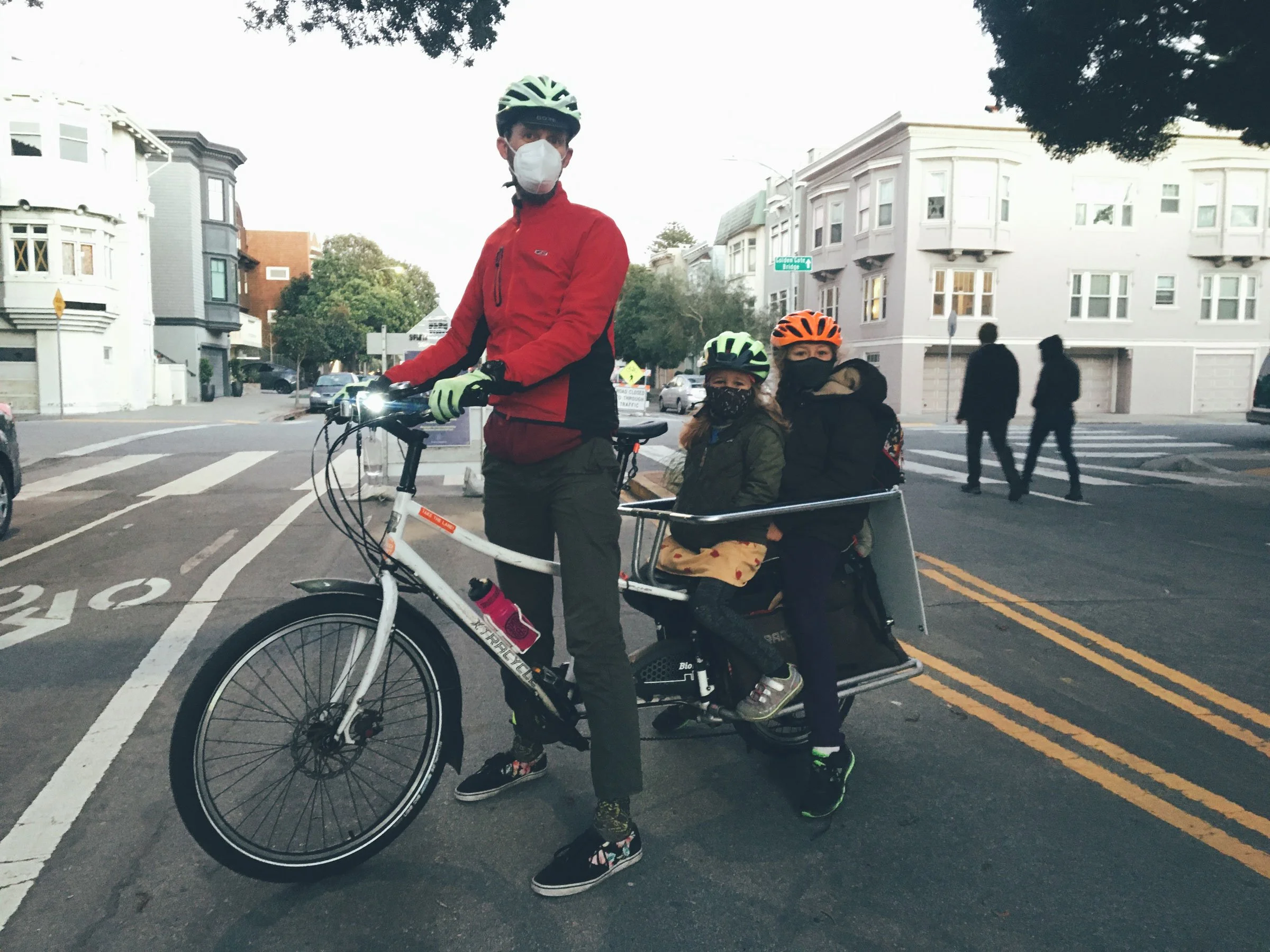 ALEX DARR (riding home on bike with son WILLIAM and daughter LUNA)